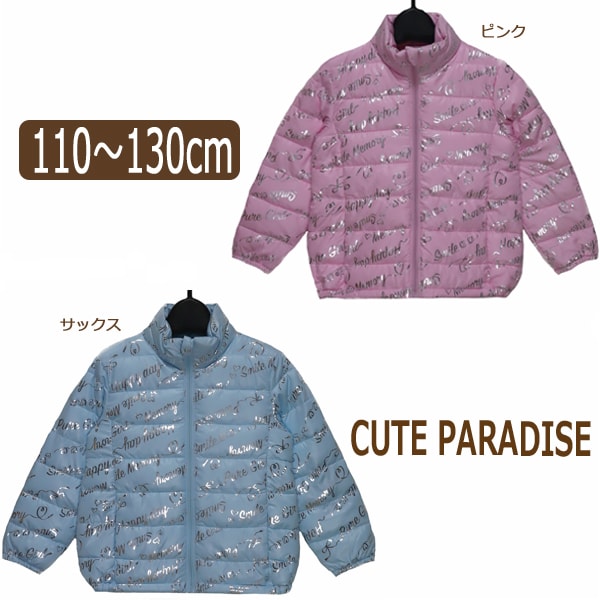 ★1 CUTE PARADISE 中綿 ファイバーダウン ジャンパー 110cm 120cm 130cm ピンク サックス 95504 キュートパラダイス 子供服 女の子 キッズ ジュニア あったか 長袖 アウター 桃 水 zs015 yob2102